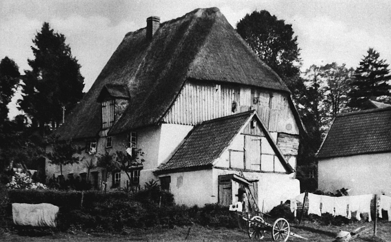 Das strohgedeckte "Haus Pattberg-Hölzer" etwa 1930