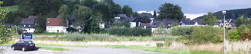 Blick vom Erdwall neben dem neuen Lagergebäude der Firma Rüggeberg auf Oberwipper. Im