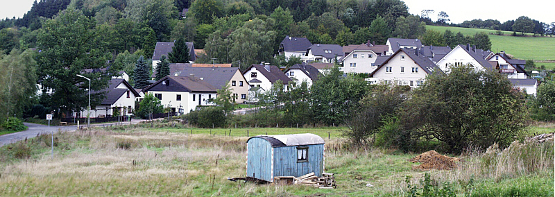 Blick von der Kreuzung Wipperweg / Hüttenbergstraße auf Oberwipper, die neuen Häuser an der Wipperwiese